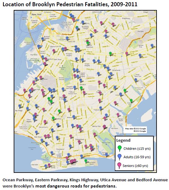 Also, a dangerous road in Brooklyn, 4th Avenue, was redesigned, principally through 52 widened crossing islands put in during the fall last year, making a street easier and less dangerous for pedestrians to cross, according to the report.