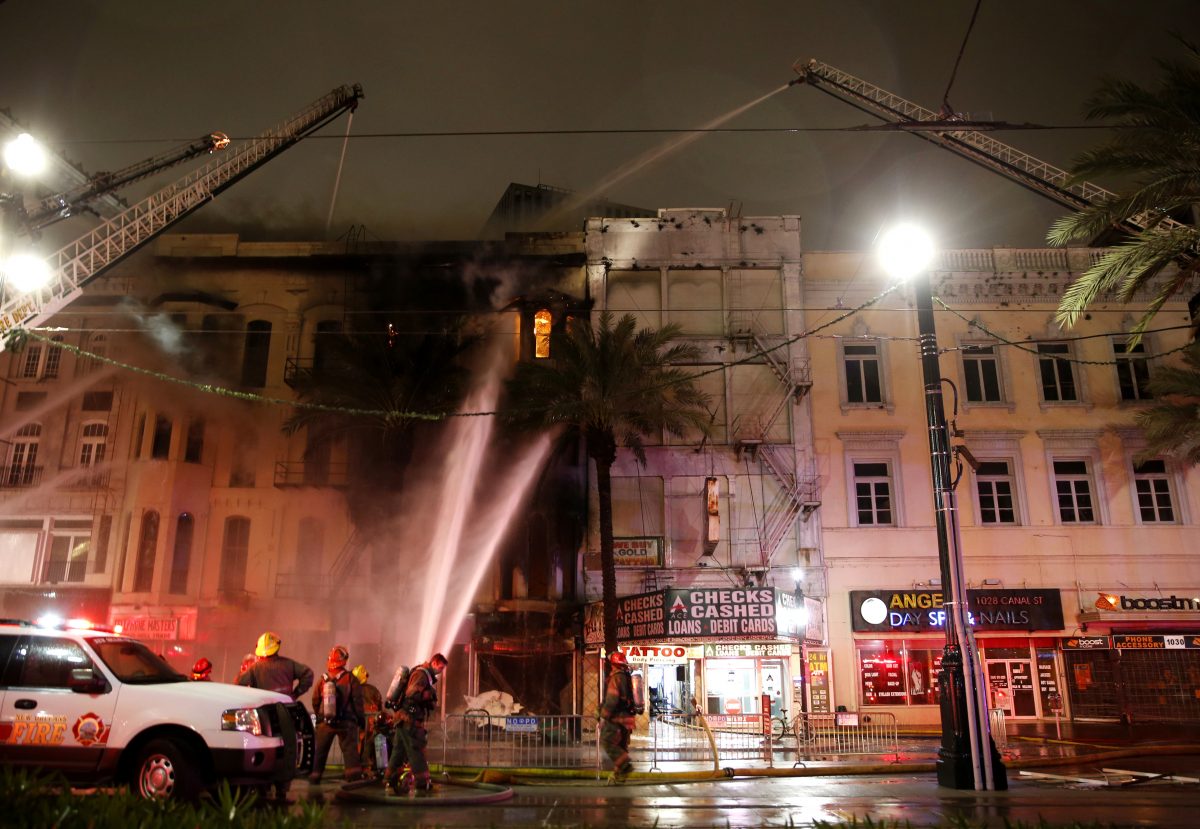 Live television images from the scene showed flames leaping from the roof. Several blocks of Canal Street, which borders the city’s French Quarter, have been closed.