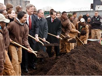The announcement was made on Wednesday at the edge of the Bronx River at Hunts Point by Mayor Michael Bloomberg and U.S. Department of Agriculture Secretary Tom Vilsack. They were joined by U.S. Representative Jose Serrano, Forest Service chief Abigail Kimball, and other elected officials.