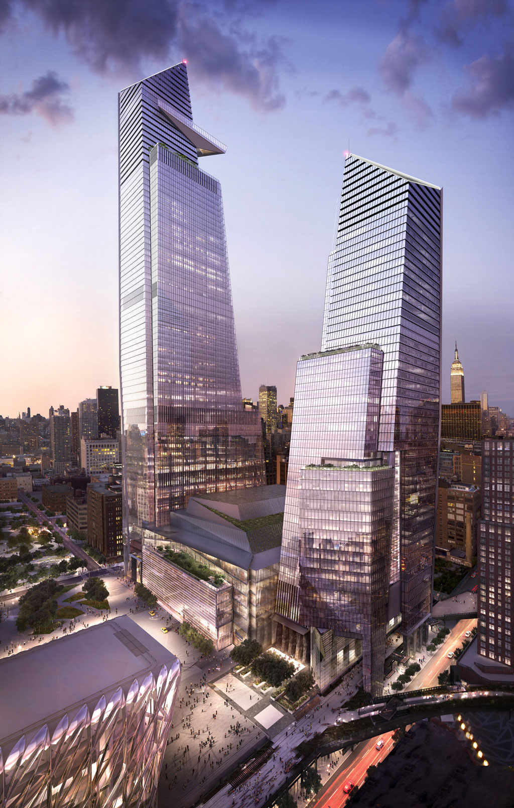 NEW YORK—Looking south from a terrace on a rental building at the Highline in West Chelsea, four cranes can be seen at work on new developments off in the distance. The World Trade Center’s towers are behind them, and the Statue of Liberty stands nobly in Hudson far behind it all. Turning east, the Empire State Building is just five avenues away. And one street to the north lies the game-changer: Hudson Yards.