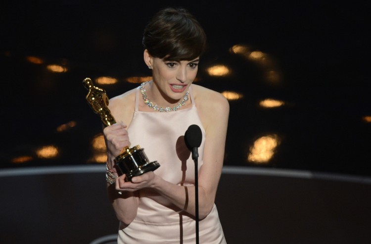 This is Anne Hathaway’s first Oscar win – for “Les Miserables.”