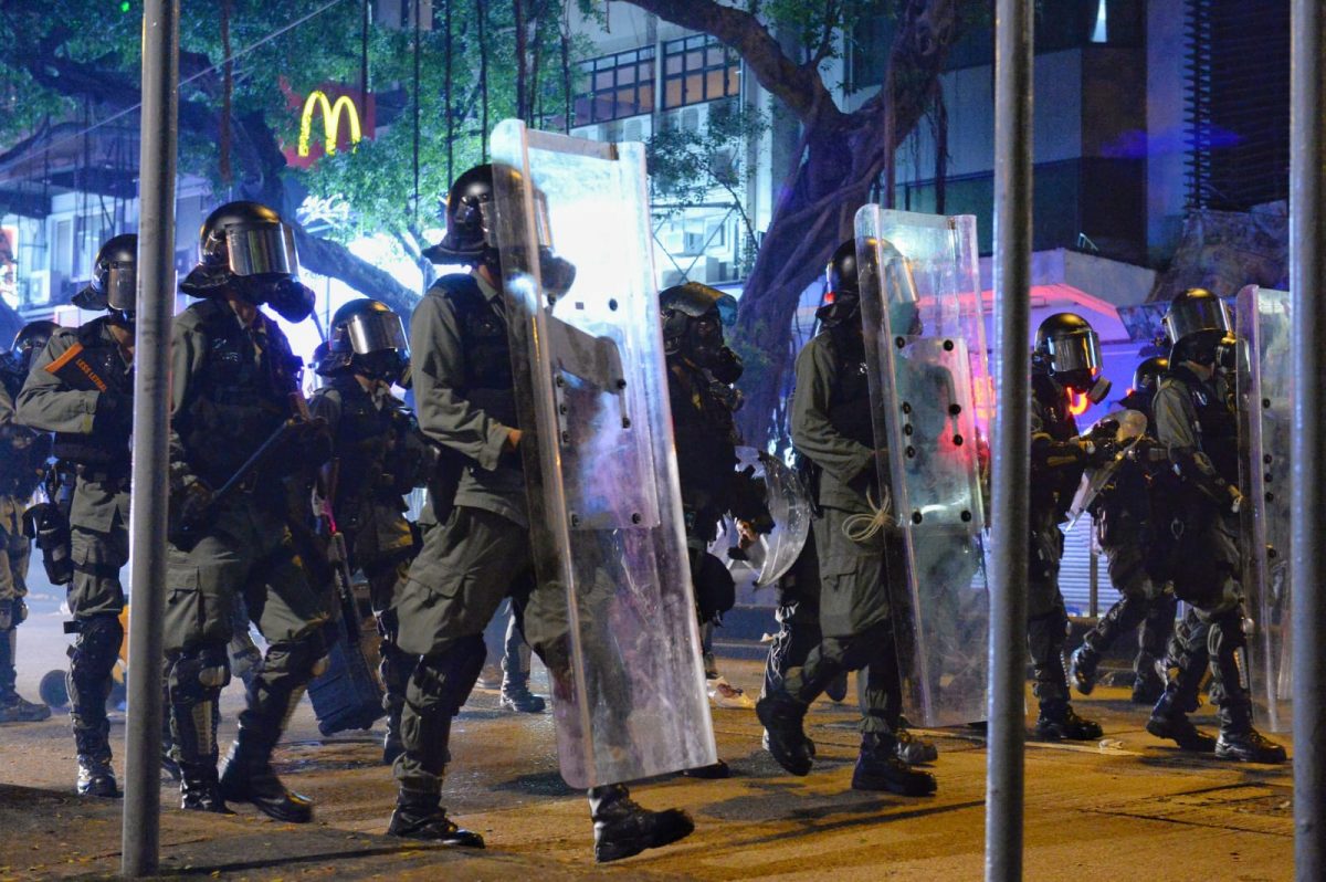 Particularly intense clashes between protesters and police broke out in Wong Tai Sin, a residential district of Kowloon. Police fired tear gas as tensions escalated at the local MTR station and, according to a government press release, protesters were also seen surrounding Wong Tai Sin Disciplined Services Quarters, throwing items at the building and damaging gates.