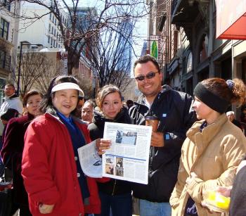Mr. Zheng is a 41-year-old Chinese man from Fuzhou City, the capital of Fujian Province. He used his real name to withdraw from the CCP. When he saw exhibits of the CCP’s extensive crimes, including organ harvesting from Falun Gong practitioners, he said, “I know all about these crimes of organ harvesting! The CCP is too evil!” He had been persecuted in China because he and his wife had a second child. Mr. Zheng said that many people from Fuzhou have withdrawn from the CCP. “If it weren’t for issues with the CCP, why would anyone want to leave his or her own homeland to go live in a foreign country? Everyone knows why, even though they may not talk about it. A lot of people are reading The Epoch Times. The Nine Commentaries on the Communist Party is completely true. Now when we [those from Fuzhou] get together, we often ask each other when we withdrew from the CCP.” A passer-by said that almost everyone in the Fuzhou Chinese Association has withdrawn from the CCP.