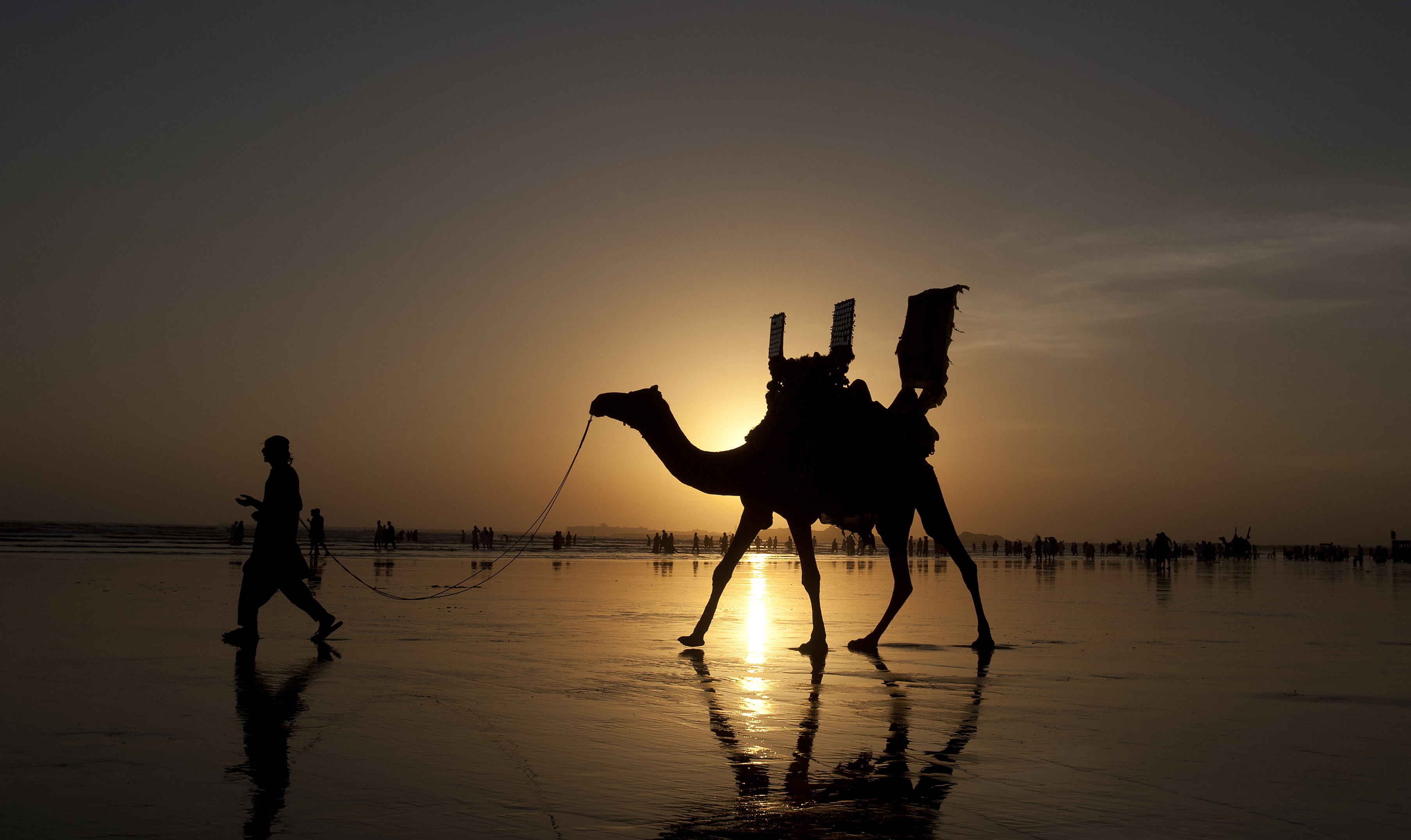 A man walks his camel through the desert near Liwa Oasis, southwest of Abu Dhabi, United Arab Emirates, on Dec. 20, 2015. (Karim Sahib/AFP/Getty Images