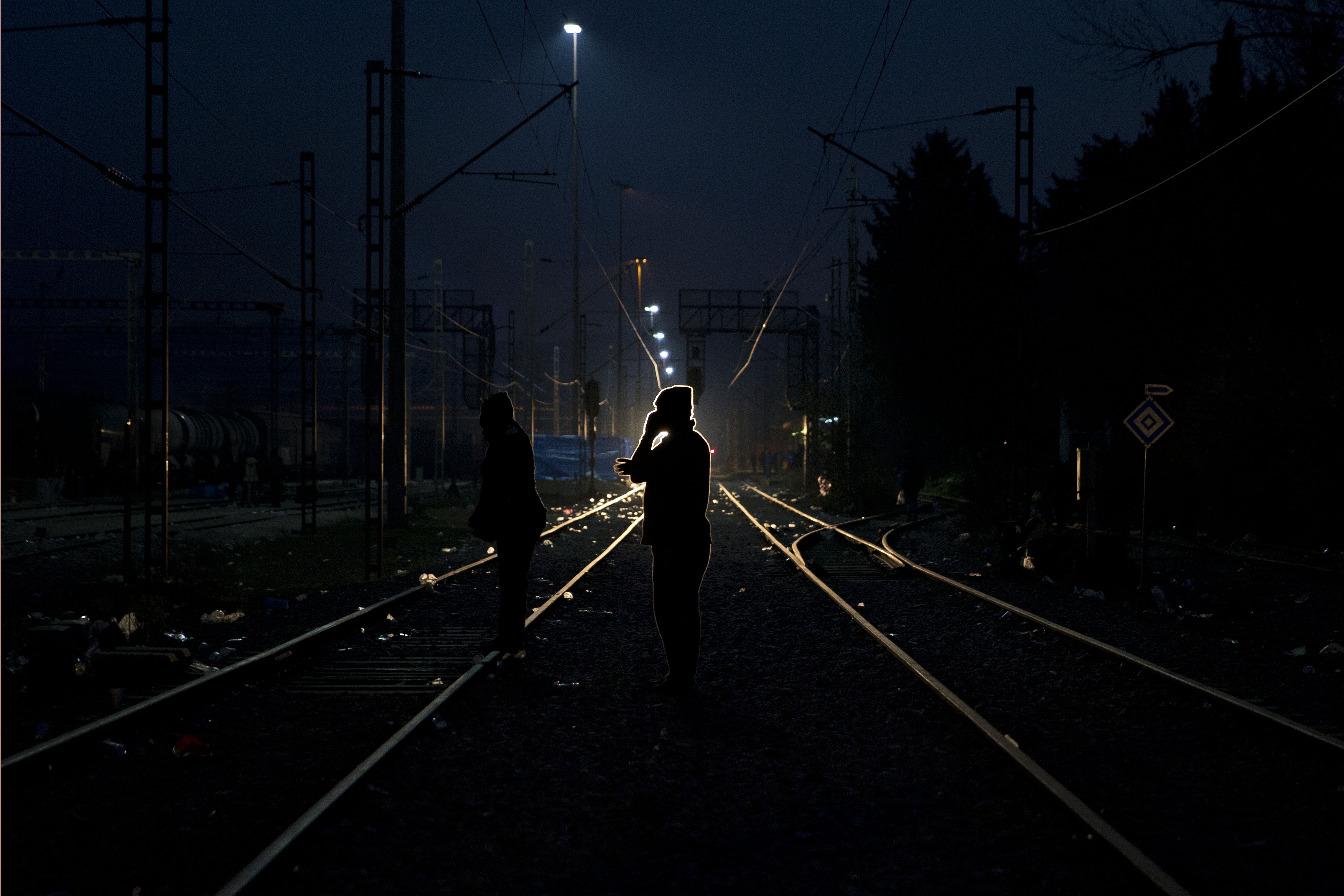 A migrant speaks on the phone as he standing on railway tracks at the northern Greek border station of Idomeni, on Dec. 5, 2015. According to Greek authorities, more than 1600 people remain stuck on the Greek side of the border as Macedonia and other Balkan countries refuse to let them through, considering them economic migrants. (AP Photo/Petros Giannakouris)