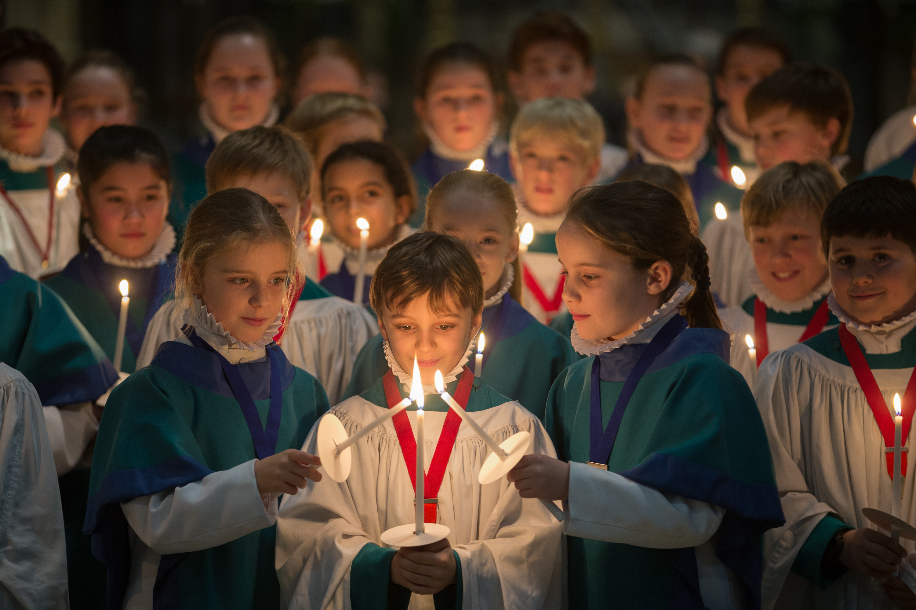 Children of the Salisbury Cathedral Choir light candles during a rehearsal for Christmas Eve in Salisbury, England, on Dec. 21. (Matt Cardy/Getty Images)