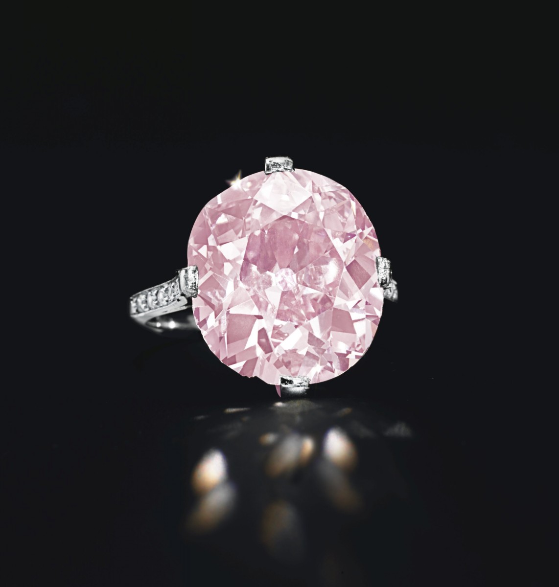 The Clark Pink ring was the star of the show. The cushion-cut fancy vivid purplish pink diamond ring of 9.00 carats by Dreicer & Co., circa 1910, was estimated to sell for $6 million to $8 million. Brett Stettner, of Stettner Investment Diamonds took home the trophy ring for around double that.