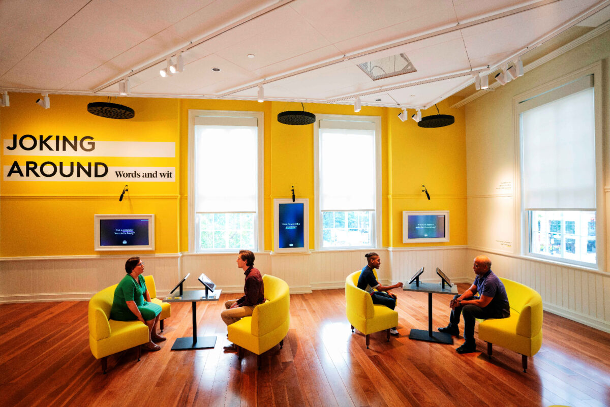 The many side experiences in every gallery are fascinating in themselves but so easy to overlook. You might miss the signs above the entrance to the Joking Around room: “Outside of a dog, a book is a man’s best friend. Inside of a dog, it’s too dark to read.” Bada boom.