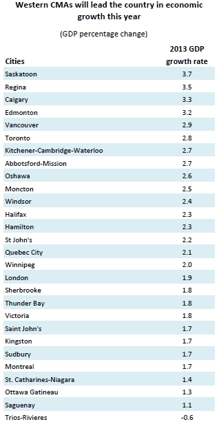 The growth of economies in Saskatchewan’s largest cities will even outpace booming Edmonton and Calgary, says the Conference Board of Canada’s Metropolitan Outlook for Winter 2013.