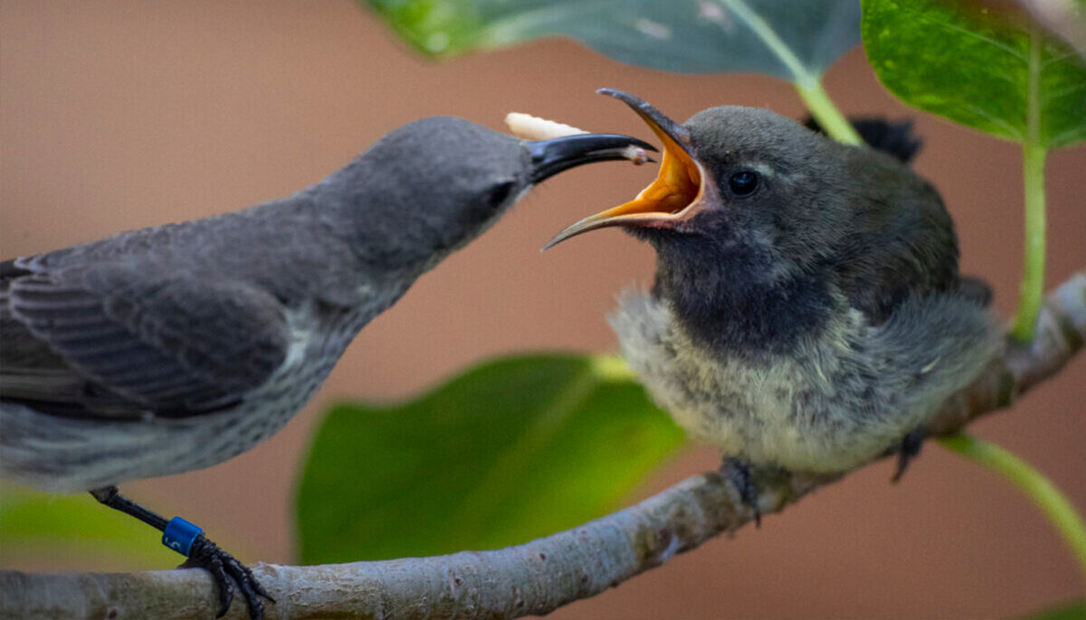 The sunbird pair reared the chick, a male born on July 21, in their self-built nest at the zoo’s Conrad Prebys Africa Rocks Aviary.