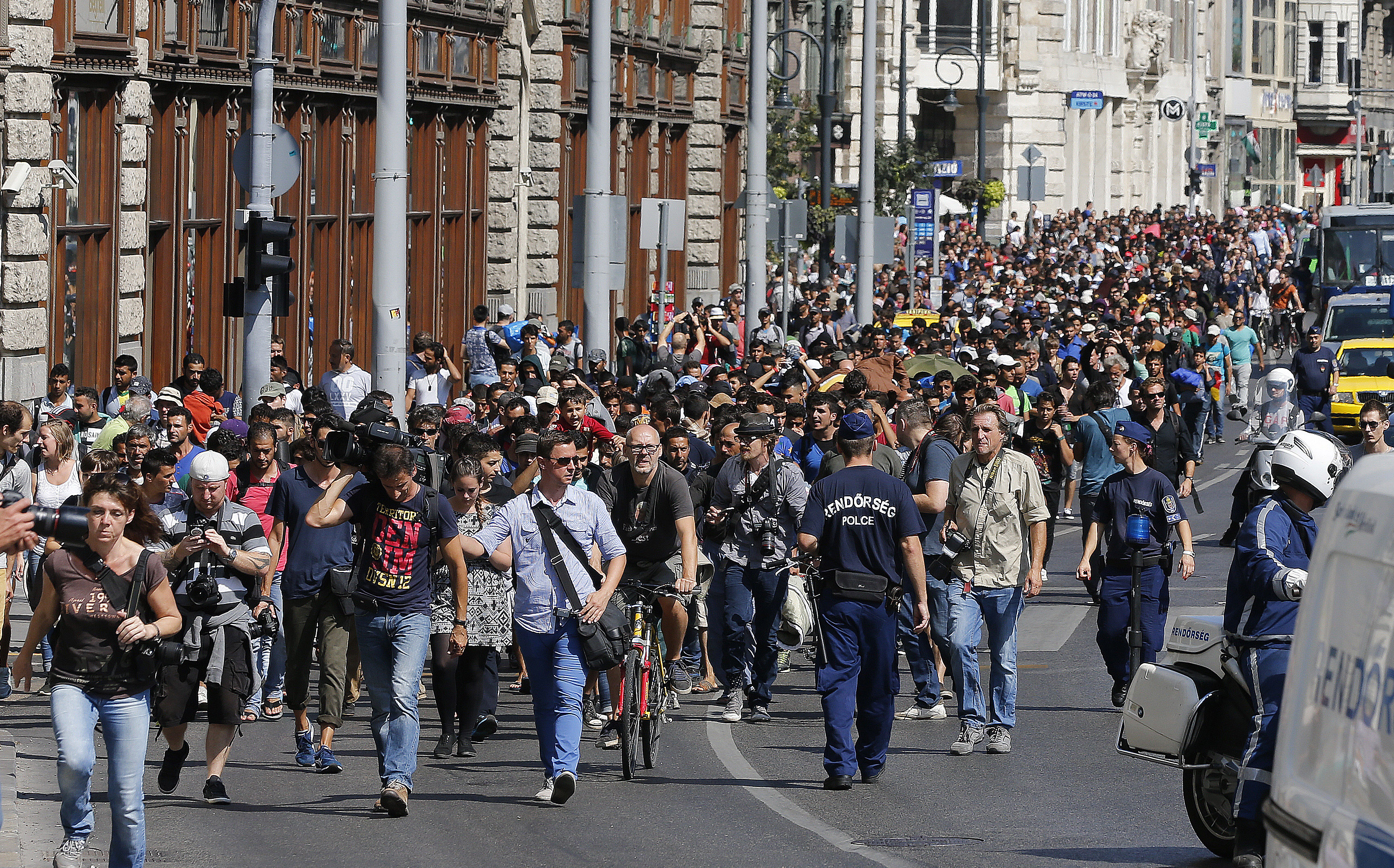 Hours earlier, about 2,000 people set out from Budapest’s Keleti station for a 171-kilometer (106-mile) journey toward Austria. Police tried to block them at first but quickly gave up. The marchers moved fast, and by nightfall they had already covered about 50 kilometers (30 miles).