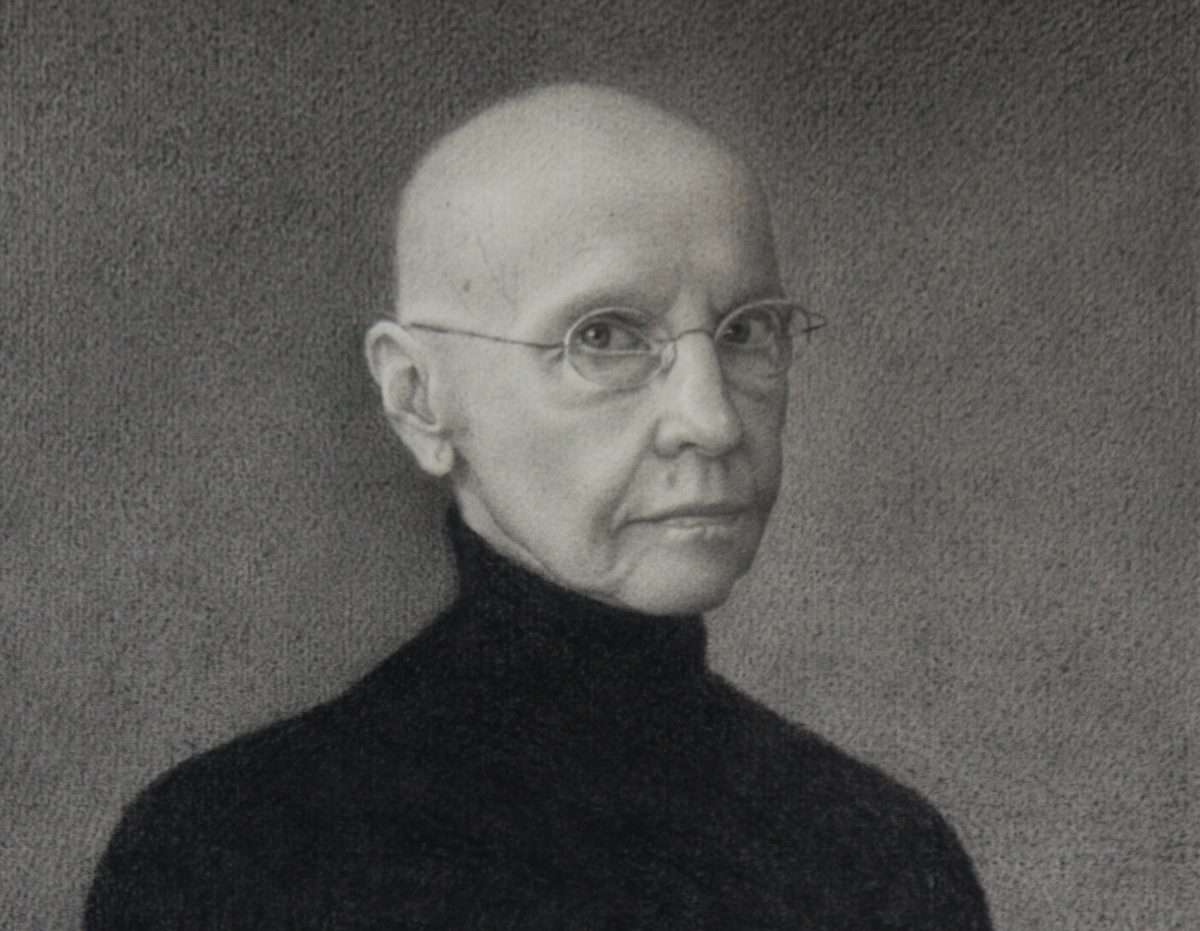 A small self portrait in pencil hangs in the beginning of the gallery. She wears a simple black turtleneck and wire-rimmed frames. Her hair is obliterated by chemotherapy, but her gaze still pierces.