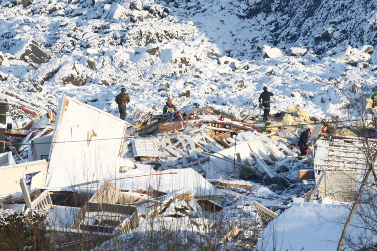 Since the original landslide, search teams with dogs have been looking through the rubble in below-freezing temperatures while helicopters and drones with heat-detecting cameras flew over the ravaged hillside in the village of 5,000 residents.