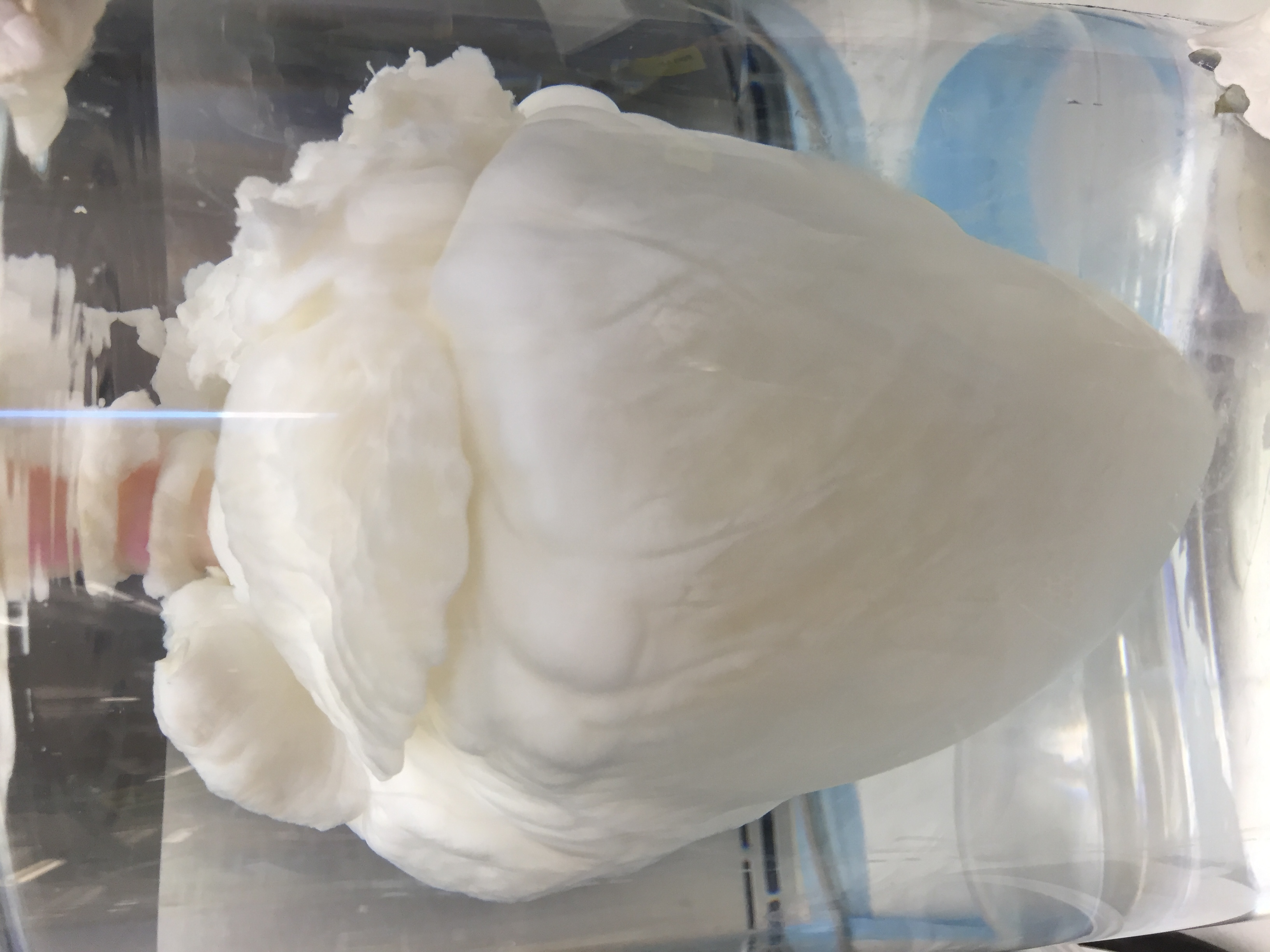 After this process all that’s left is a bioscaffold, which is the structure and architecture of the organ minus its cellular constituents. This bioscaffold architecture consists largely of collagen and elastin.