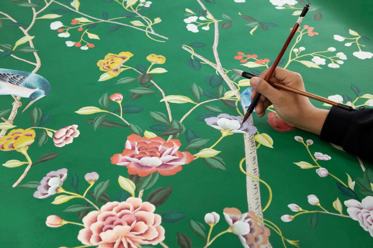 It takes 15 to 20 years of practice to achieve the painting skills necessary; an artist first copies someone’s else painting style for eight years before creating his or her own. At de Gournay, the artists and craftsmen are experts in decorative details and possess an extensive knowledge of painting techniques as well as the colors and designs of hand-painted wallpapers from different time periods.