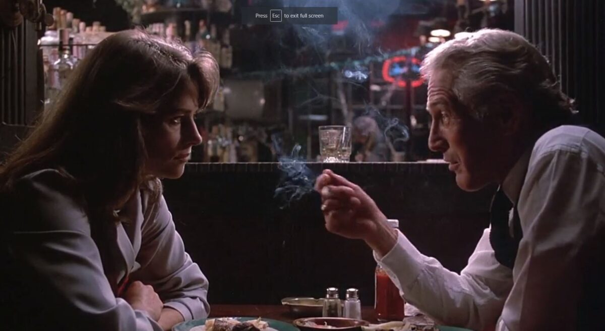 He’s playing a game of pinball in a run-down bar, and much like his life, he keeps losing game after game. The large window in the background paints a dreary, gray scene, and that, along with a crooked Christmas ornament dangling nearby, signals that it’s winter. This long, unbroken shot immediately gives you an insight into Frank. Each time he loses a pinball game, he pauses and takes a sip from his semi-flat beer or a drag from a cigarette.