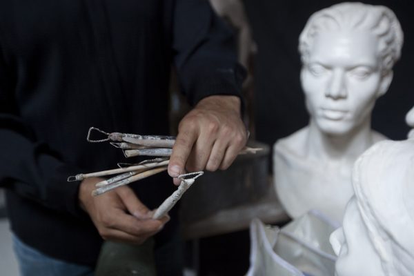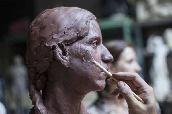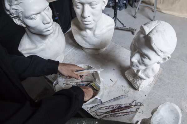 In the meantime, it’s not unusual for Mostow to work long days in the studio, some from 9 a.m. to 9 p.m., divided between a couple of hours on the business aspect of his artwork as a fellow of the Clark Hulings Fund (an organization dedicated to giving business support to visual artists), about five hours sculpting a model, and then three hours teaching.
