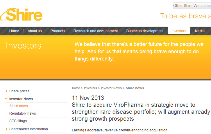 Dublin-based pharmaceutical company Shire is making its biggest deal to date by adding U.S.-based ViroPharma to their rare disease portfolio for $4.2 billion.