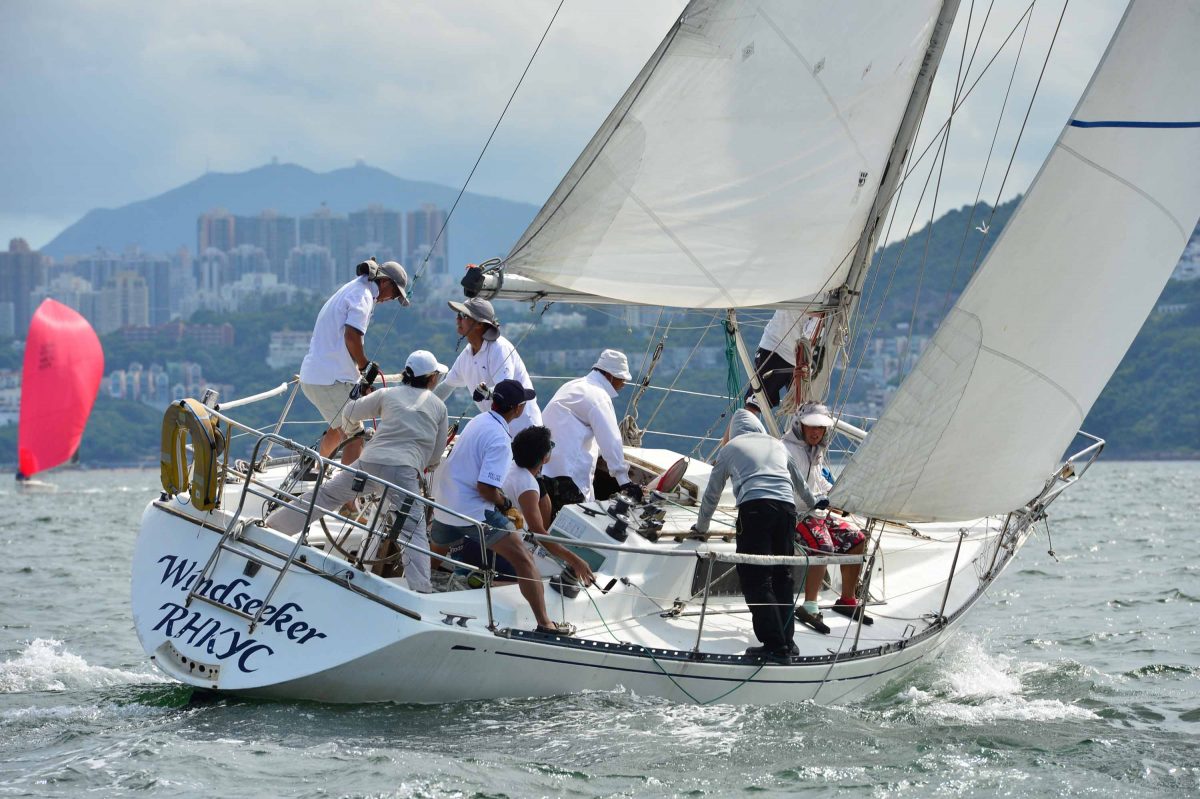 Race Officer, Gerry Daughton, decided to deviate from the normal sausage course for Races-8 and 9 and set a three-circuit, triangle, sausage, triangle route for the IRC boats and Sports Boats. He used the same course for the HKPN and Dragon fleets, but restricted the race to two circuits (triangle, sausage). Due to time shortage and a thunder storm in the vicinity Race-9 was shortened to two laps for all boats.