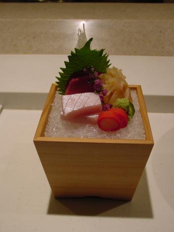 One experiences the true hospitality of the East at Sushi Zen. As you walk in, you are immediately greeted by the hosts and gracefully escorted to their table. We chose to be near the chef at the Sushi Bar and decided to go omasake (putting yourself in the chef’s hands). We were delighted by one surprise after another.