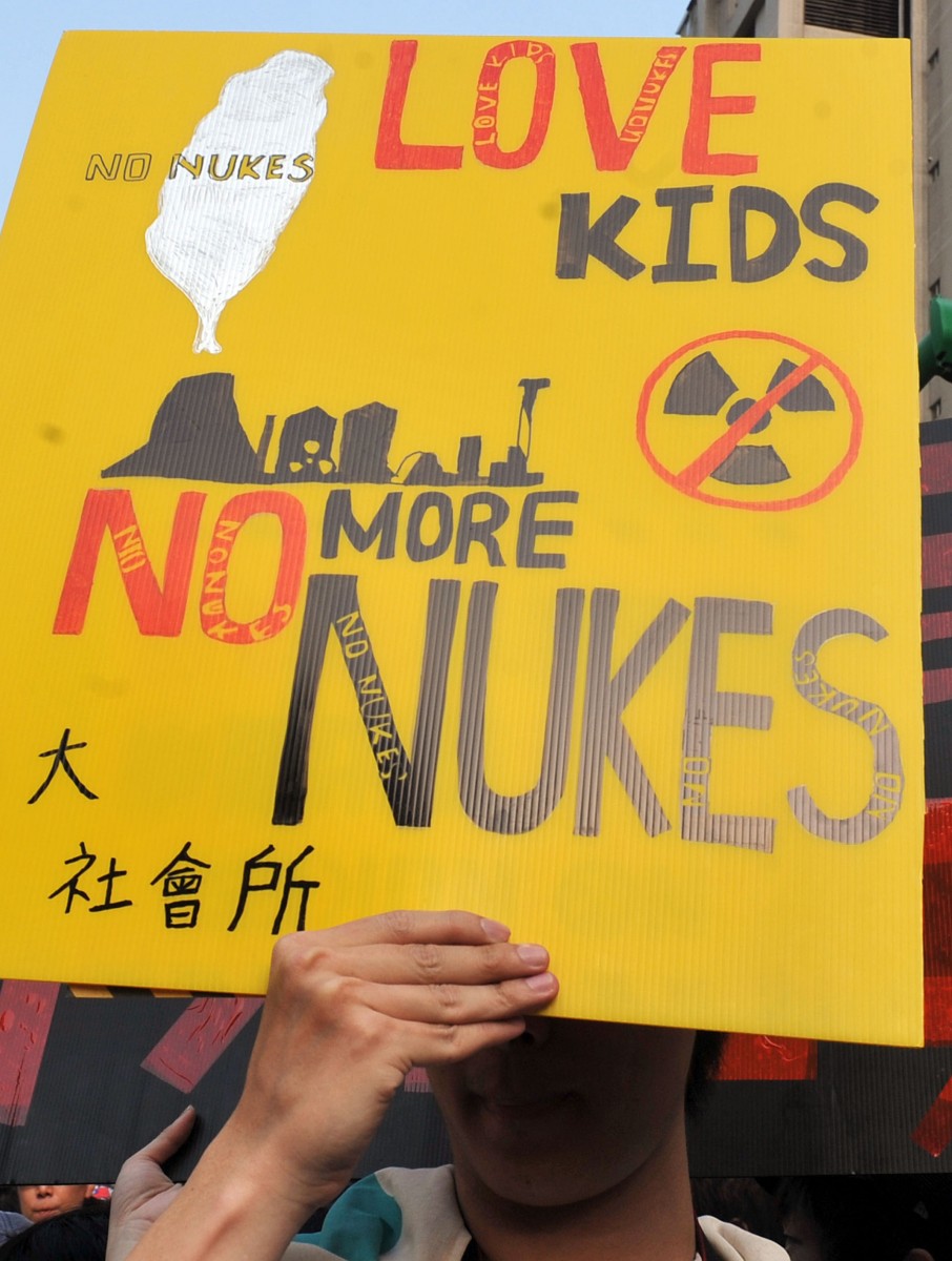 The protest took place simultaneously in Taipei, Taichung, Kaohsiung, and Taitung City in northern, central, southern, and eastern Taiwan respectively, just two days before the second anniversary of Japan’s Fukushima nuclear power plant accident on March 11, 2011.