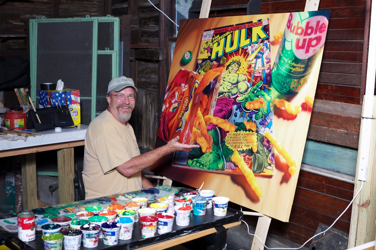 “Mark is the mentor we photorealists all look up to. He has been the guide for all of us who are trying to portray flotsam and jetsam in oil paint. Mark’s most famous works include the theater candy counters and the series of scenes from the Brooklyn-based seltzer man.”