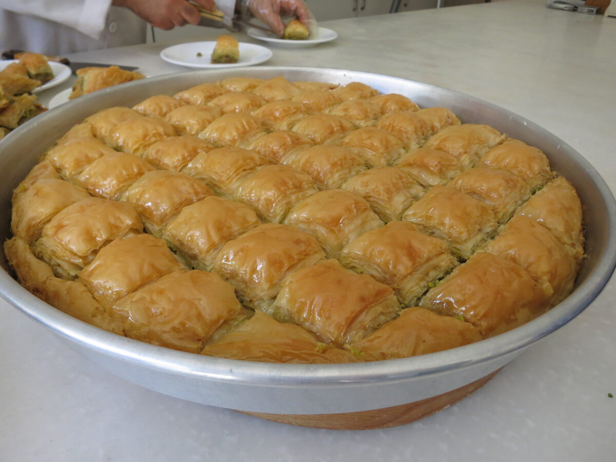 I was never overly fond of walnuts, I’d tell them, but Antep’s baklava features the region’s most famous product: pistachios. In fact, the city lends its name to the Turkish term for pistachio: antep fistigi, or “the nut from Antep.” Antep Baklava enjoys a Protected Geographical Indication from the European Commission.