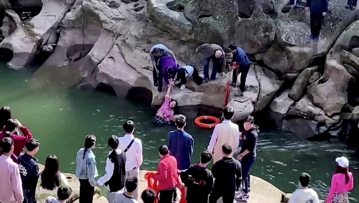 A mobile phone video showed the woman disappear under a footbridge and emerge face down, apparently unconscious.