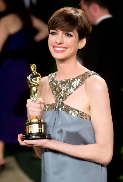 Anne Hathaway, actress, won her first Oscar for Best Supporting Actress for her role in “Les Miserables.”
