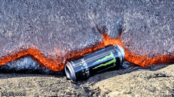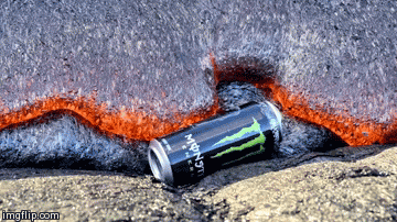 In yet another video of random objects next to flowing lava, an intrepid YouTube user uploaded footage of lava approaching a Monster Energy can.